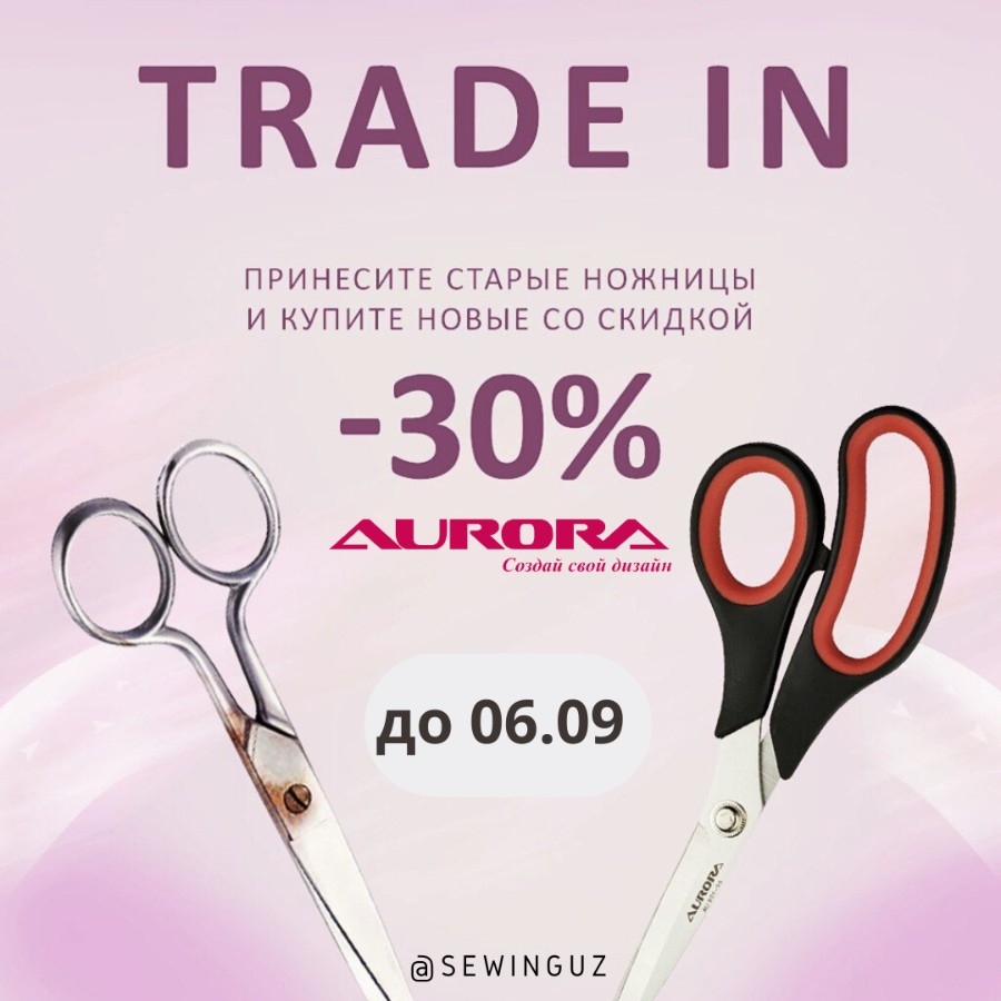 Первый швейный Trade In от бренда Aurora. Только до 06.09.2024 вы сможете обновить свои портновские ножницы на новые марки Аврора.
